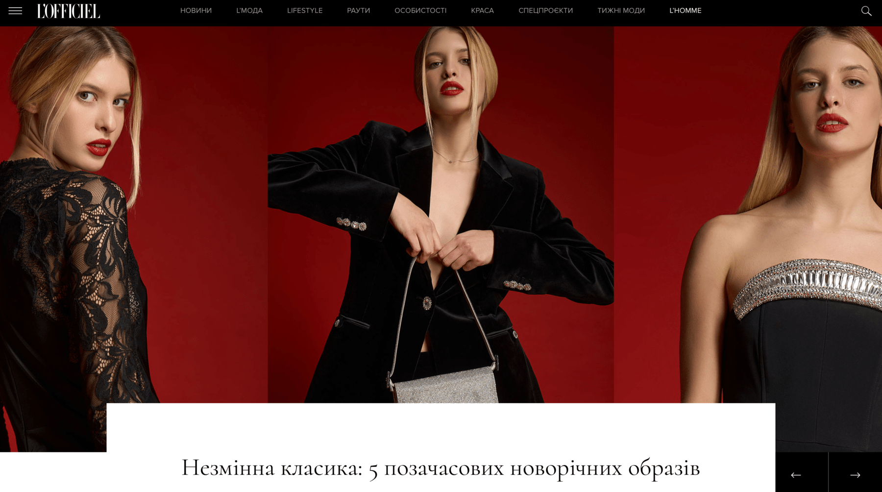 L’Officiel — ідеальний супутник для активної та сучасної жінки, путівник по світу розкоші і вишуканого смаку. Журнал, який знає про моду все, і навіть більше.